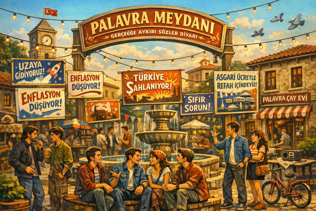 Bu yaz enflasyon düşecek! Palavra. Bu yılı emekli yılı ilan ediyoruz! Palavra. Asgari ücret düşük değil… Palavra. Yeni Türkiye… Palavra. Türkiye büyüyor, şahlanıyoruz… Palavra. Komşularla sıfır sorun… Palavra. Uzaya gidiyoruz… Palavra. Demokrasi… Palavra. Bağımsız yargı… Palavra. İnsan hakları… Palavra. İfade özgürlüğü… Palavra. Basın özgürlüğü… Palavra. İnanç özgürlüğü… Palavra. Almanya bizi kıskanıyor… Palavra. Avrupa’da raflar boş! Palavra. Türkiye yüzyılı… Palavra. Biz bu milletin hizmetkârıyız… Palavra.